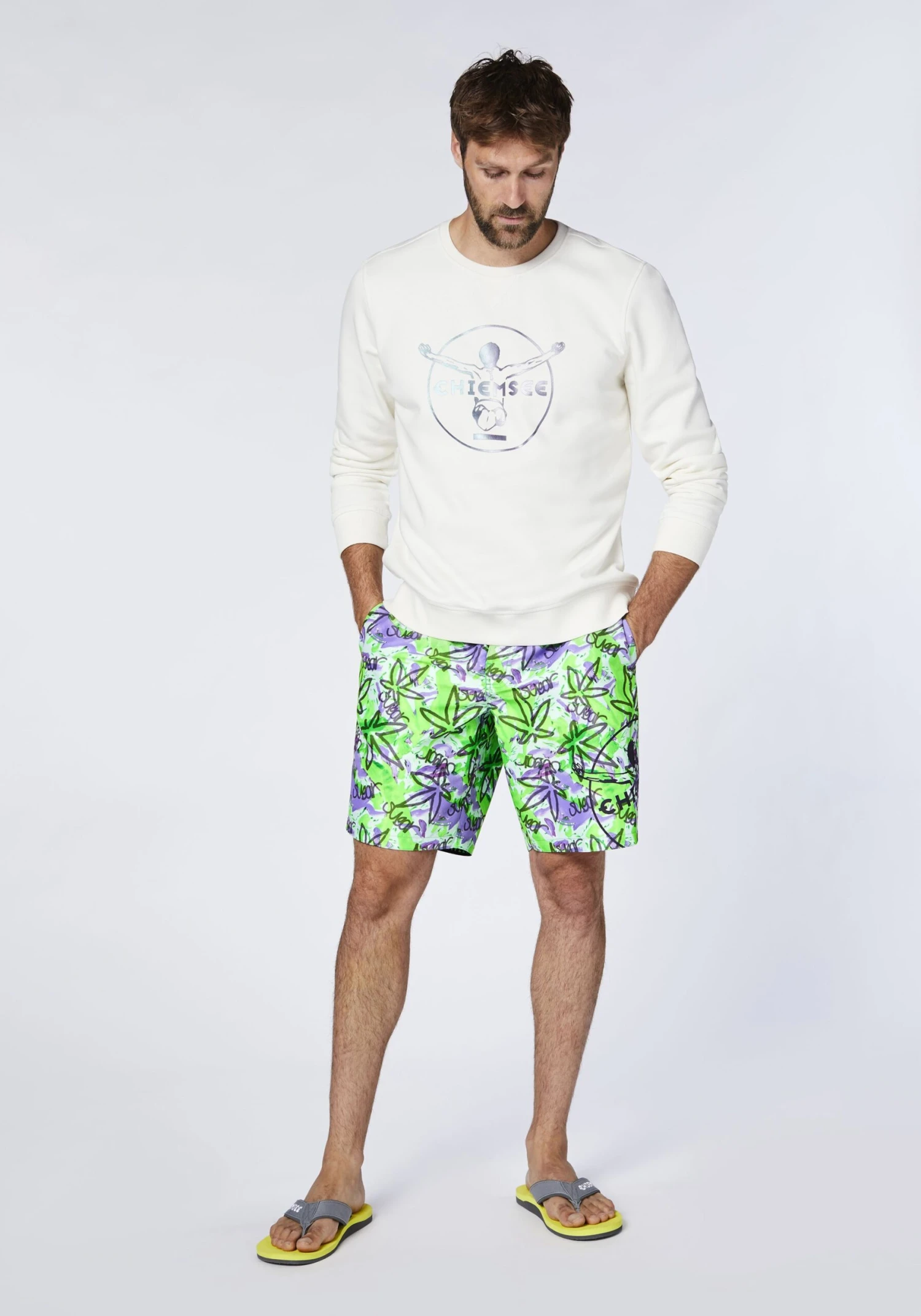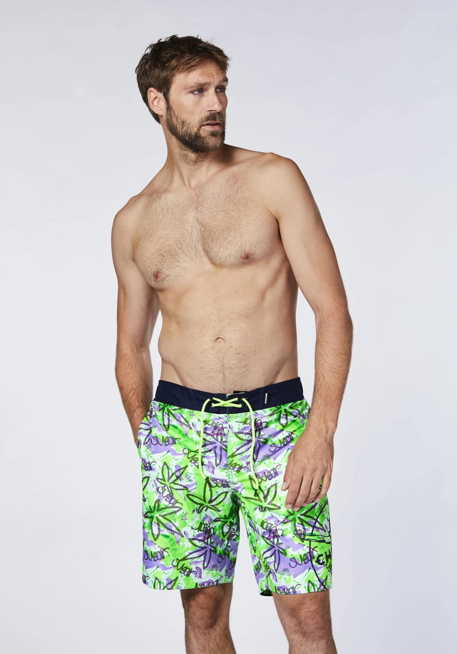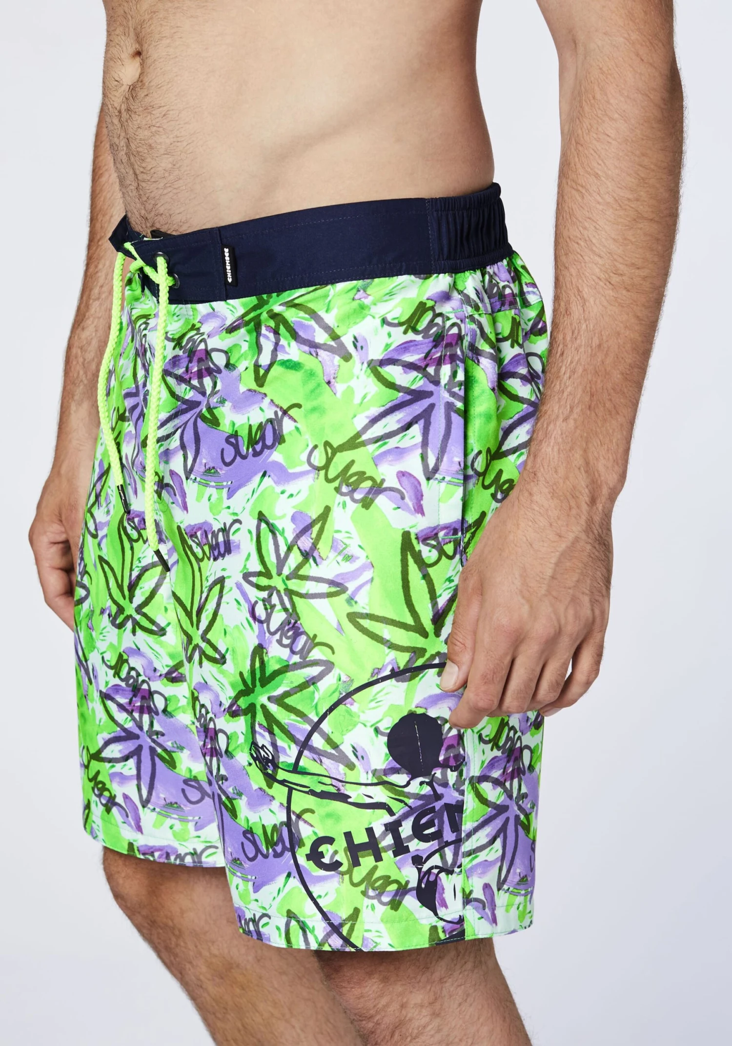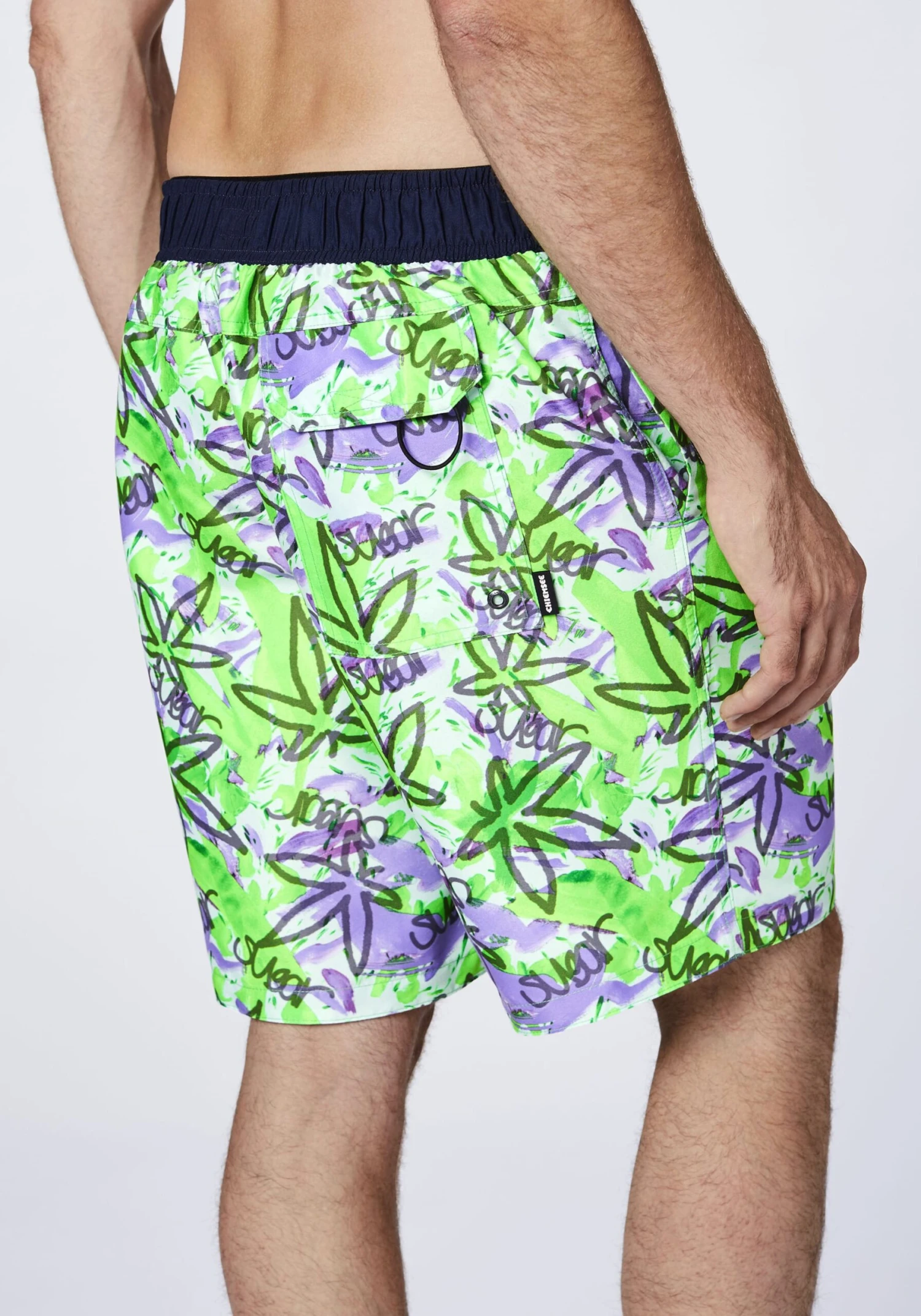 Mit ihrem trendstarken Alloverdruck macht die knielange Herren Badeshorts von CHIEMSEE direkt Lust auf einen Sprung ins kühle Nass. Sie ist lässig und bequem geschnitten und bieten dir mit dem komfortablen Innenslip ein super angenehmes Tragegefühl. Der Bund ist teilelastisch und mit Klettverschluss und einem Tunnelzug versehen, damit du die Badehose in der Weite individuell anpassen kannst. Zwei seitliche Eingrifftaschen und eine praktische Gesäßtasche machen den coolen Style perfekt.
