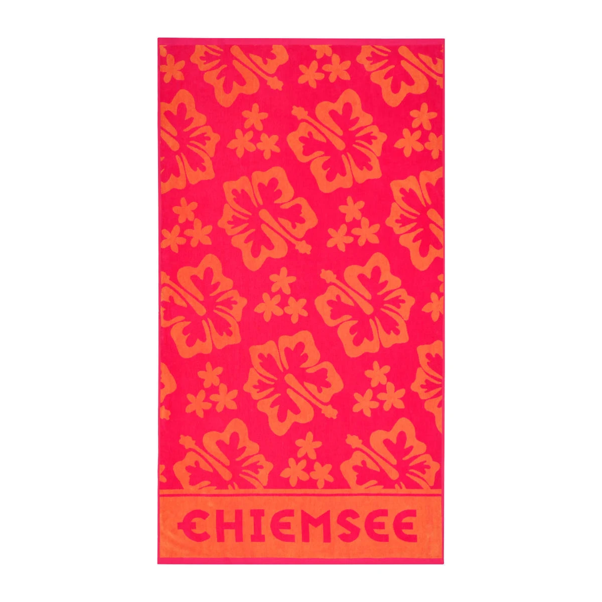 Mit diesem neonfarbenen Strandtuch in leuchtendem Pink und Orange wirst du in deinem nächsten Urlaub garantiert alle Blicke auf dich ziehen. Das florale Muster in Kombination mit dem klassischen Chiemsee Schriftzug versprüht Lebensfreude pur.
